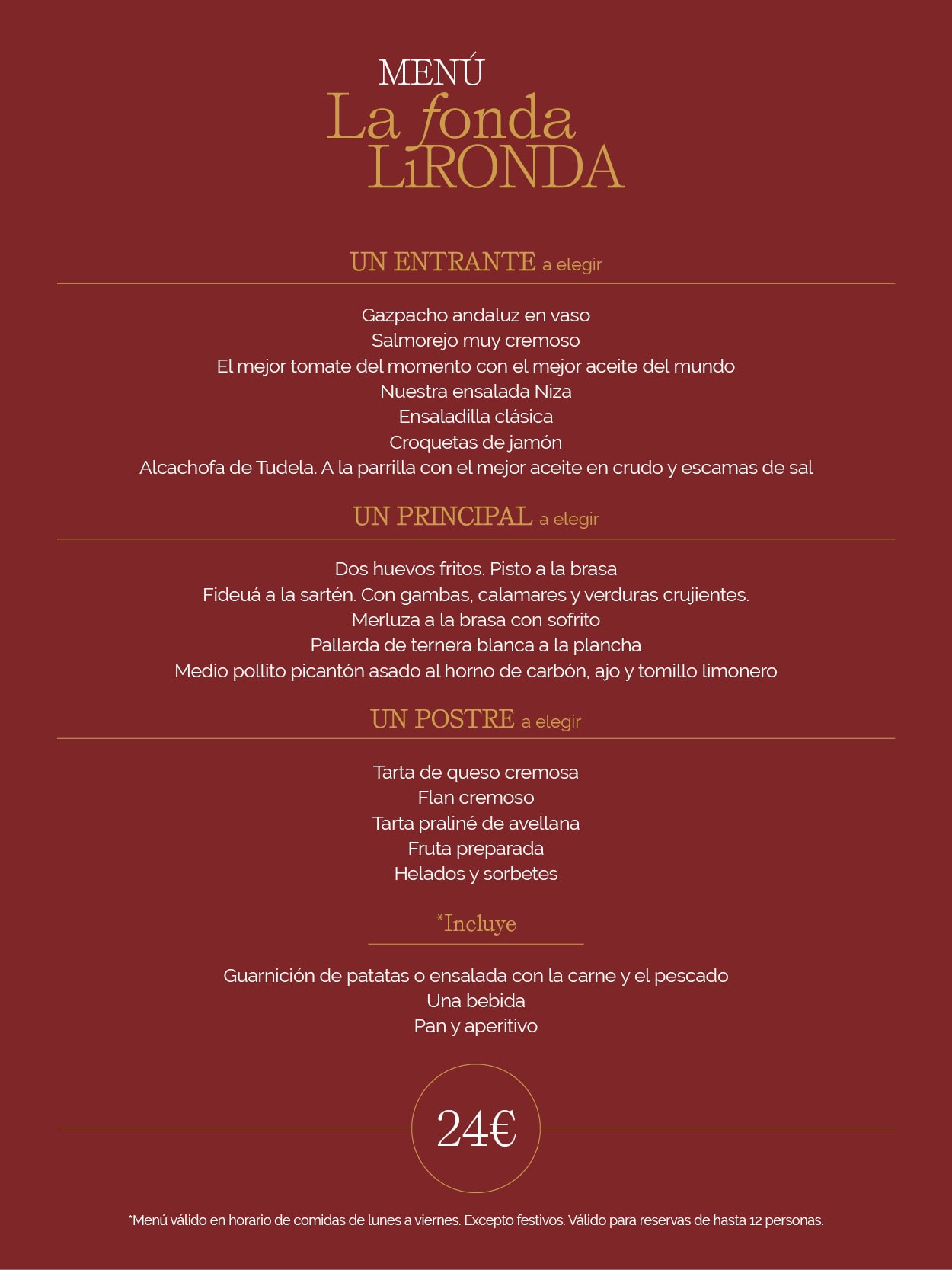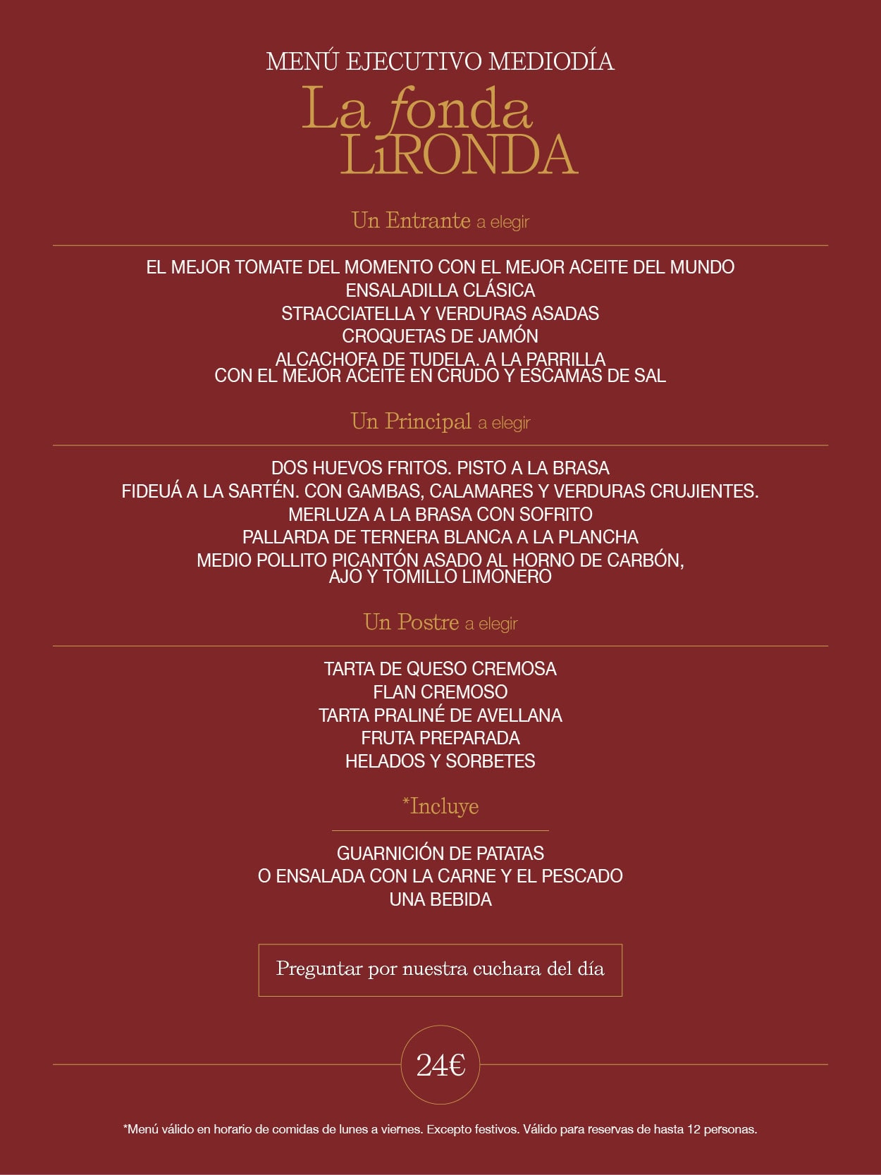 *Menú válido en horario de comida de lunes a viernes. Excepto festivos.